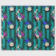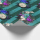 Den här djärva, vibrerande Alice i Wonderland-inspirerade designen har den vita kaninen, klockorna och rosor på en teal och mörk grönt rand i lodrät. Perfekt för borttagning av sidor, hantverk eller presentomslag. Se förhandsvisningen av bilden "seam" för att se till att den är godtagbar.