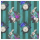 Den här djärva, vibrerande Alice i Wonderland-inspirerade designen har den vita kaninen, klockorna och rosor på en teal och mörk grönt rand i lodrät.