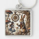 Alice i Wonderland White Rabbit tea Art Fyrkantig Silverfärgad Nyckelring