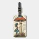 Whimsical luggage tag featuring Alice and the Caterpillar from the Lewis Carroll Wonderland storires. Image of Alice, the mushroom, and the caterpillar were created with Canva AI.