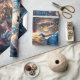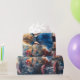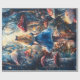 A whimsical decoupage design featuring Alice walking along a woodland path lined with red cap mushrooms, capturing the magical charm of Wonderland.