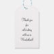 Uppsättning med 10 vita rektangulära märkre med en vintage Alice i underlandets bild av Alice som träffar Cheshire Cat och anpassade text. Baksidan är vit med anpassade text. Se matchande favoritpåse. Visa hela Wonderland Favor Bag-samlingen i SPECIELLA TUUCHES | Avsnittet Party favors.