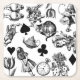 Klassisk Alice i underlandstecken - Baserat på det ursprungliga John Tenniel-bilderna från Alice's Äventyr i Wonderland från 1800-talet finns det Mad Hatter, Cheshire Cat, White Rabbit och Alice, naturligtvis. Konst teckning illustration.