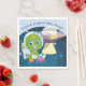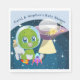 Anpassa den här söta pappra napkin för mamman och pappa att vara i tid för sin kommande babydusch! Den berömda baby-utlänningen leker med leksak raketer medan sitta framför sitt rymdskepp med blommor. Ett baby flaska ligger i bakgrunden.
