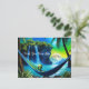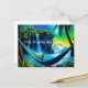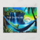 Cute Alien på en tropisk persikorelaxering i en hammock. Önskar att du var här på vykort AI-konst senast minx267