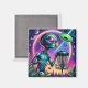 Skivgolfing utomlands ai art. Colorful extraterrestrial kastar en skiva i rymden.