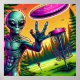 Coola och unika golfingartiklar av typen golfingutomaniai. Färgfullt extraterrestrial grått som kastar en skiva i en golfstift.