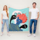 Alien-peoky-filt med en vektorillustration av en främmande flicka med blått skinn, rött hår och glödande öga, omgiven av sina fantastiska vänner som är söt svart och vitt spöken. Den här konstigen psykedeliska teckningar tilltalar en person som gillar mörk, fräcka, märkliga konst och är underbar även för Halloween.