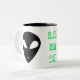 En del av vår "yttre motorväg mugg", detta kaffe/te mugg, visningar ett främmande mugg skott på båda sidor med ett utländskt brev från grönten. Titeln är en lek på ord, en främmande konstruktion på ett mugg samtidigt som ett skott i mugg. Den trycks också i vitt på en svart bakgrund. Du kan också välja stil och färg i mugg. Gör en coola gåva!