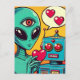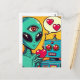 Alien och Robot i Kärlek Retro-Tecknaden Vykort