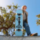 Utomstående skateboard. Ljusblå bakgrund. Gör en "ut ur den här världen"-gåva!