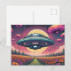 Alien Planet som flyger UFO över Flower Fält Vykort