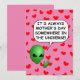 Inbjudningar till anpassningsbar. Ett främmande tecknad som säger att det alltid är mors dag någonstans i universum. Röda hjärtan och rosans bakgrundsversion. Gift idé till mor om kärlek utomjordingar och sci-fi.