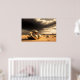 A mysterious sci-fi desert scene featuring monumental golden alien relics half-buried in endless sand dunes. Under a dramatic stormy sky, smooth metallic forms with intricate details suggest remnants of a forgotten civilization. A cinematic surreal artwork that blends science fiction, symbolism, and futuristic atmosphere—perfect for modern interiors and bold statement wall art.