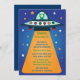 Väldigt sött rymdskepp med en lysande stjärna. Ljusstrålen tänder inbjudan.
