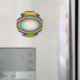 Den här magneten har en flerfärgad mönster av ljust psykodelic färg som omger en central äggformad struktur. Det liknar en fantasi om ett främmande rymdskepp-redo för att borra en dagling.