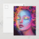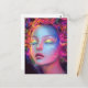 Den här merisande digitala grafiken har en glödande kvinnlig porträtt med sluten ögon, omgiven av strålande, flerfärgade hår som liknar nebulae och galaxer. De nynna nyheterna och det surrealistiska estetiska framkallar en drömvärld för futuristiskan, perfekt för älskare av fantasi, cyberkonst och visionär design. En fängslande biet.