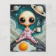 En lustig Alien klädd i PJs med kaffe och ägg sitta på en sten för frukost i rymden skapade AI konst