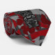 Röd, kolgrå och silver färgskala. Denna slips är ett tropiskt tryck inspirerat av vintage aloha skjortor från sextio- och sjuttiotalet. En pop art sextio-tals stil bakgrund kombineras med slitna tiki-gudar och hibiskusblommor. Rolig slips för den konservativa mannen med humor och en passion för Hawaii-öarna. Dessa mönster finns i flera färger.