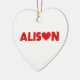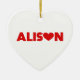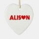 Namn Alison med brev ersattes med ett rött kärlek-hjärta. Färg kan ändras.