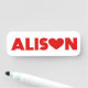 Namn Alison med brev ersattes med ett rött kärlek-hjärta. Färg kan ändras.