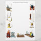 Fyll i ditt namn eller namnet på en gåtmottagare för detta personliga alkemilaboratoriets brevpapper med en mängd olika bägare, destilleringsapparater, termometrar och annan laboratorieutrustning runt sidans kant, med utrymme för korrespondens.