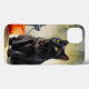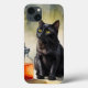 En nyfiken svart katt med strykande golden ögon sitter bredvid ett mystiskt glas flaska fyllt med en bärnstensvätska. Vattenfärgsmålningen fångar kattdjurets inkvisitiva karaktär och scenens spännande atmosfär. Perfekt för kattälskare och dem som uppskattar en aning mysterium i sin konst.