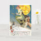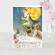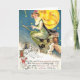 Vintage bild av en häxa på en broomstickhalloween vykort.