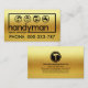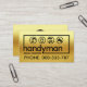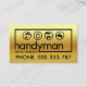 En guld-täckmantel har en handyman som visar ram som hyser ert prestigefyllda namn. Över överst finns en handyman verktyg-formad motiv som kan representera några av de tjänster du erbjuder, t.ex. kan borrmätningsbandet representera hemreparationer, snickeriarbeten osv. Användningen av verktyg är lämnat enligt er egen tolkning. Nära basen har du dina kontaktuppgifter. Överst uppe finns logotypen för hammaren i guld, som du kan använda följt av namn, dess kontaktuppgifter och ett sloganbildningsalternativ. Ett underbart slående kort för handyman till använda. #handyman #homerepairaster #building #byggnad #entreprenör #remodeling #buildingingaster #homerepair #interiordesign #homeImprovement #handymanTools #zazzlemade