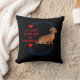 Featuring a sweet dachshund design with bold red lettering and playful heart and paw accents, this pillow: