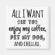All I want is to enjoy my coffee, pet my dog, and chillax! This fun text design in black is all about relaxing with your dog. It's shown here on a custom fridge magnet. It's a cute design for dog lovers that just want to relax, drink their coffee, and hang out with their dog!