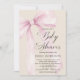 All in One Blush Pink Bow Linen Baby Shower Inbjudningar