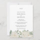Elegantens botaniska bröllopsinbjudan med gräns av vitt och elfenbenst ro och mjukt löv över klassisk vit bakgrund och dina initialer, namn och alla speciella bröllop-detaljer skrivna i ett grått-typsnitt. Kortomvänt har plats för mer information som logi, Attire, Osa, Hotel, transport och annan relevant information för gäster, familj och vänner. Oavsett om du planerar en sommartid i chic firande eller en romantisk vår-affär, anger inbjudan perfekten för din speciella dag och låter dig spara pengar med ett allt-i-ett-bröllop-kort.
