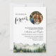 An elegant Wedding Invitation with watercolor mountains and pine trees that you can customize with your details.