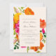 Embrace the charm of nature with this enchanting wedding announcement, adorned with a lively arrangement of whimsical poppies and ranunculus flowers. The rich tapestry of orange, coral, and fuchsia blooms, intertwined with verdant foliage, brings a delightful burst of color to your special occasion. Designed to capture the essence of a sun-drenched garden, this invitation sets a romantic and joyful atmosphere for your upcoming marriage. Let these exquisite floral elements herald the beginning of your forever.