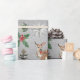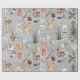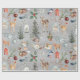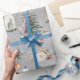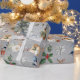 En vattenfärg målad julomslutning papper med renar och all sak-jul på en skakande silver bakgrund.