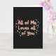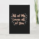 This card features the message “All of Me Loves all of You” in rounded, blush-pink letters placed right in the center. The words sit on a solid black background, which makes the pink text stand out clearly and feel warm and close ❤️. Around the message, there are small white hearts and simple white doodle lines scattered like little accents. These tiny hearts and lines loosely curve around the wording, hinting at the shape of a bigger heart that seems to wrap the message in a hug 💕. The overall look is simple and focused, with the black, pink, and white colors keeping everything easy to read. The text is the main focus, with no characters, just a sweet line that says exactly what you feel. Share it with someone special and let it help you pass along a little extra love on Valentine’s Day 😘.