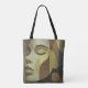 Turn heads with this all-over printed shoulder tote featuring a serene abstract face in warm earth tones. The design covers both sides of the bag, blending soft browns, yellows, and beige into a modern and expressive portrait. Perfect for art lovers, creatives, and anyone who values unique fashion, this medium-sized tote offers both style and function. With sturdy cotton handles and a durable polyester body, it’s ideal for daily errands, shopping, or as a standout gift.