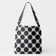 Bär din tillhörigheter i stil med all över - trycktotot hänger lös att presentera en djärv svart polka pricker mönster på en vitbakgrund. Det geometriska mönster kompletterar den justerbara svarten fäster.