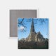A high-resolution view of the Grade II listed All Saints Church in Salterhebble, West Yorkshire. The image captures the church’s impressive Gothic Revival spire and detailed stonework from the perspective of the historic graveyard. Framed by silhouetted tree branches against a crisp blue sky, the late afternoon sun illuminates the weathered textures of the sandstone, highlighting the architectural heritage of the Calderdale region.