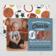 Söt sporttemafördjupning för första födelsedagsinbjudan med ett foto av födelsedagspojken.