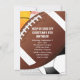 Utformningen har en fotboll i mitten med basket, baseboll, golf boll och fotboll i bakgrunden. Tillkännagivandet är ett kollegialt stil-teckensnitt. Anpassa denna inbjudan till ett temaparty för idrott eller fotboll. Det finns gott om utrymme på baksidan om du behöver lämna annan information, t.ex. anvisningar, underskrift av ansvarsfriheten eller en påminnelse om att ta med strumpor.