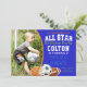 Fira din lite all stjärna födelsedag med denna roliga sportinbjudan! Presenterar fotoet av födelsedagpojken, sportbollarna och blåttbakgrunden.