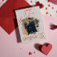 modern romantic photo card with soft neutral tones, expressive red paint splashes, and handwritten-style typography. The layered brush effect frames the couple’s photo, creating an emotional, intimate, and contemporary look. The red accents and heart detail symbolize love, passion, and connection, making it ideal for meaningful occasions.