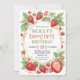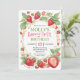 Mycket Söt Flickas Första Födelsedag Jordgubbs Frukt Vattenfärg Första 1:a Födelsedagsinbjudan