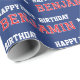 Gör din födelsedagspresent papper med en personlig för snyggt! Detta fet typografiska mönster visar namn och födelsedagskalender hälsning i ett klassiskt block-stil-brev tillsammans med stjärnmotiv. Meddelandet "Lycklig 21:a födelsedag" kan också anpassas eller ändras för att passa en annan ålder eller firande. En vintage stil som passar alla åldrar, från barn och tonåringar till familj och vänner. Perfekt för ett speciellt landmärke firande som din 16:e, 18:e, 21:a, 30:e, 40:e eller 50:e födelsedag! Den här sömlösa designen är tillgänglig med en projektionsyta eller en glansig avsluta. Färg: röd, mörk blått och vit.