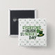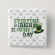 "Alla är iriska på St. Patrick's Day" grönt, typografisk knapp top hat och klöver med keltiska snurrar och blomstrande bakgrund.