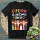 Främja vänlighet och delaktighet med denna "Alla är välkomna hit"-design. Perfekt för hem, klassrum och företag sprider ett budskap om acceptans, mångfald och tillhörighet. Visa ditt engagemang för att skapa ett välkomnande och säkert utrymme för alla.