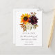 Skicka ut ett Spara datumkort som dina gäster kommer att minnas! En djup gyllene solros, burgundisk röd ros och mjuk vit hydrangea skapar en elegant höstbukett. Blommorna är inkapslade i höst löv djupa gröntar som är utspridda med en mängd bär. En kombination av klassisk typsnitt beskriver ditt bröllop-datum och din plats. Ditt pars fotografi placeras på vykortet tillbaka.Det här sparandet av vykortet är en del av samlingen Solros och Burgundy. Den innehåller mallarna för att skapa en unik spara datummallsuppsättningen.