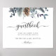 Elegant gästbokssignering med möjlighet att ändra texten för att passa alla evenemang. Exklusiv handmålad akvarell blomsterdesign högst upp med lövverk och tall i blå, marinblå, salvia, grå och gröna toner. Användning av handskriven modern kalligrafi och blocktypografi. Matchande gästbok tillgänglig. Del av vår "Rustik Blå Berg" bröllop- och evenemangssamling.